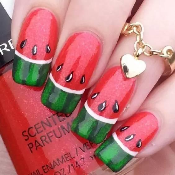 3. 使用美甲笔,将吃瓜酱涂抹在指甲上,形成独特的图案。